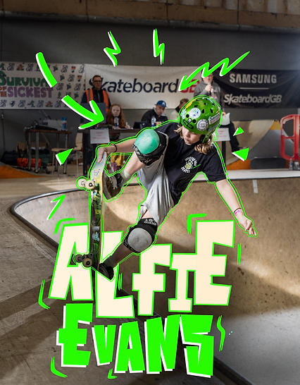 Skating out of Hampshire, Alfie is our OG rider and continues to break all kinds of new ground at every opportunity. Longing to be a professional skateboarder, Alfie has impressed at local and national competitions. Alfie skates our Skulls deck currently along with Indy trucks and Spitfire Formula 4 wheels (58s).