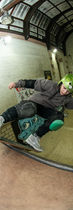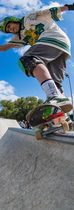 His favourite local skating sites are the Winchester bowl and uses local Pitt Street and the world famous Southsea Skatepark on his doorstep. He hopes to skate the Marbella bowl again in Barcelona.